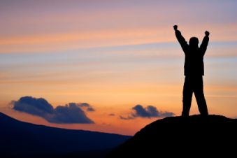 Man standing on the edge of rock on sunset.
